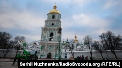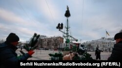 У Києві на Софіївській площі почали монтувати новорічну ялинку, повідомляє кореспондент Радіо Свобода.
