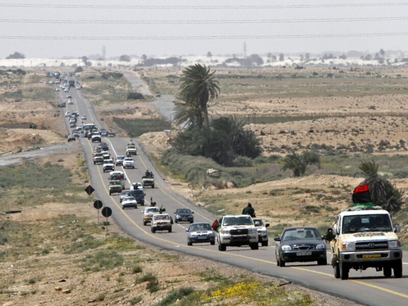 Напередодні, у вівторок, сили Каддафі змогли зупинили наступ опозиції за 100 кілометрів від міста Сирта, коли залучили танки і ракетні установки. За повідомленнями з Лівії, урядові війська дедалі частіше намагаються маскуватися, ховають міномети у пікапах, через це їх важче відрізнити від повстанців.