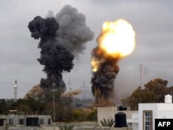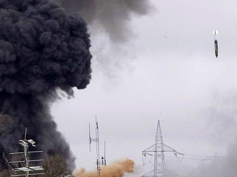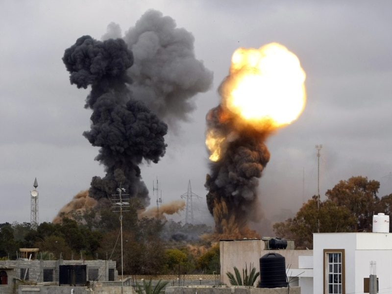 Вибухи й дим над військовими об’єктами на околиці Тріполі в вівторок. Перед цим над містом бачили літаки коаліції