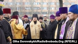 Донецьк – У вівторок у Донецьку близько сотні священиків і парафіян Української православної церкви Київського патріархату провели молебень перед Донецьким апеляційним адміністративним судом. У цей час у суді слухали справу щодо передачі у власність територіальної громади церкви у селі Кам’янка. Це слухання є першим кроком до зміни юрисдикції церкви і передачі її до Московського патріархату, з чим мешканці села не згодні. Люди молились за суддів, щоб надати їм наснаги ухвалити законне рішення.
