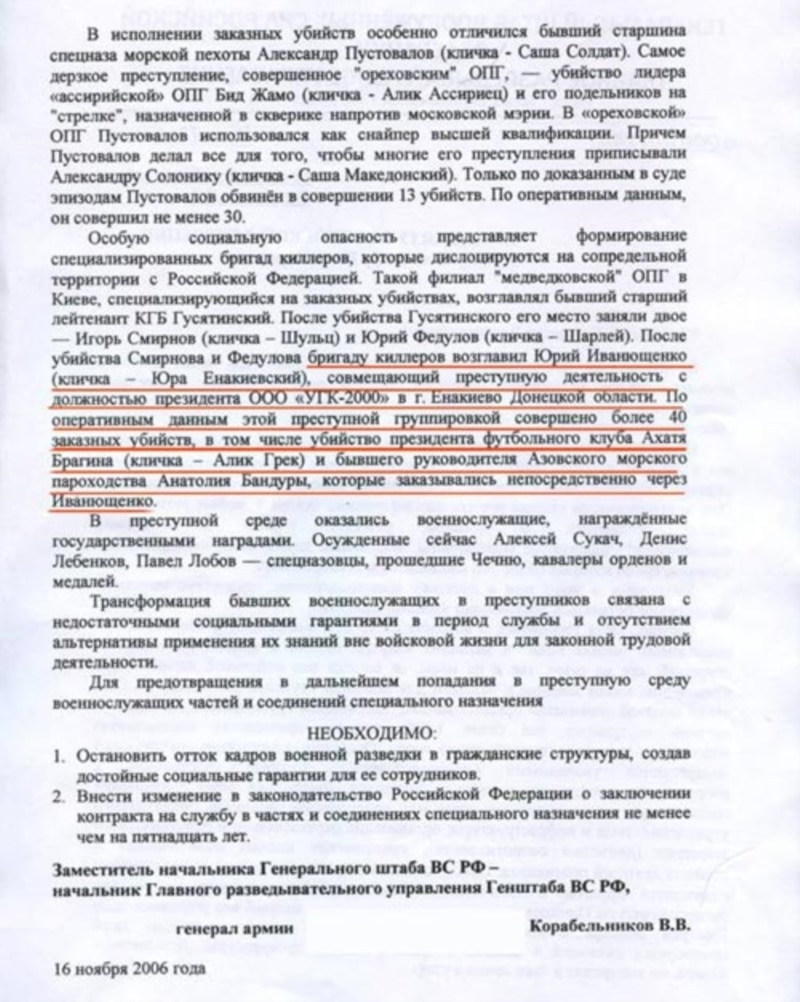 Причиною подібного службового завзяття працівників прокуратури послужило письмове звернення Юрія Іванющенка до Генпрокуратури з проханням провести перевірку фактів, викладених в інтернеті щодо його персони. Тобто, по суті, Юра Єнакієвський попросив «законників» розслідувати: чи правда те, що він був керівником ОЗУ найманих вбивць, чи ні. При цьому сама прокуратура за три роки, що минули з моменту появи статті Речинського (сам Іванющенко готувався тоді до дебютного походу в Раду за депутатською недоторканністю), чомусь не спромоглася провести розслідування щодо інформації, яка міститься в цьому журналістському матеріалі. Де-юре, тому що інтернет-видання на сьогоднішній день офіційно не зараховані до ЗМІ, а де-факто – це питання не цікавило самого фігуранта статті.
