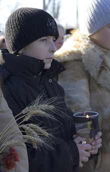 Біля хреста, присвяченого жертвам Голодомору, відбулася церковна служба. Отець Дмитро Романків із Української автокефальної церкви вважає, що Голодомор заперечують люди, подібні до тих, хто його й влаштував.