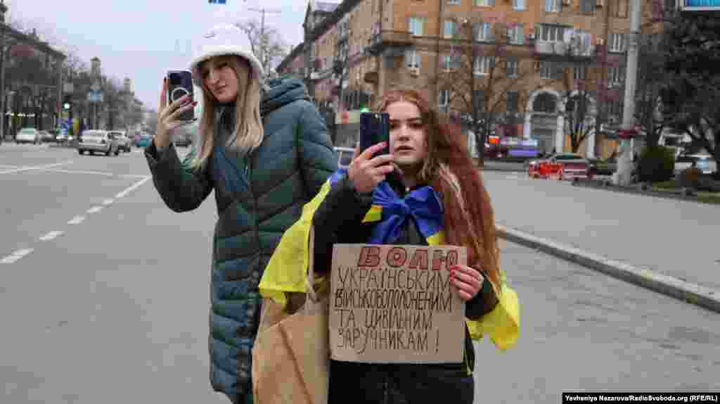 Інша частина рідних полонених та запорізькі волонтери організували фотовиставку в центрі міста на площі Митців. Під час неї на площі розтягнули маскувальну сітку, та вивісили на ній портрети своїх близьких, на повернення яких чекають