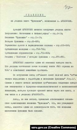 Рецензія на 35 сторінках, яку згодом надіслали до Москви, серед іншого, містила такі висновки: «Розглядаючи історію Буковини як частину історії українського народу в цілому, а Буковину як частину України, автор, втім, у розгляді історії України, зокрема Буковини, стоїть на буржуазно-націоналістичній точці зору М. Грушевського та інших».