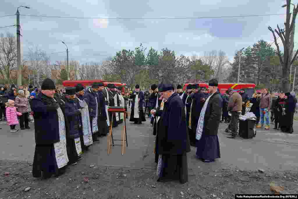 Священники Православної церкви України відслужили панахиду. Учасники церемонії поклали квіти й запалили лампадки.