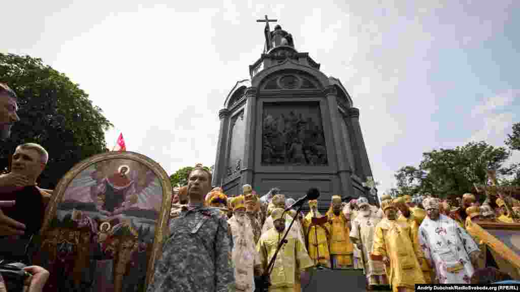 У центрі Києва пройшла хресна хода вірян Української православної церкви Київського патріархату з нагоди Дня хрещення Русі-України. Віряни та духовенство пройшли від Володимирського собору до Володимирської гірки. Очолив хресну ходу голова УПЦ КП Філарет. У ході взяли участь і українські військові. Люди несли також багато українських прапорів. Напередодні свою ходу до Дня хрещення Русі-України проводили віряни УПЦ Московського патріархату.