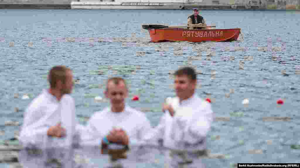 До води першими заходять пастори, а далі ті, кого хреститимуть
