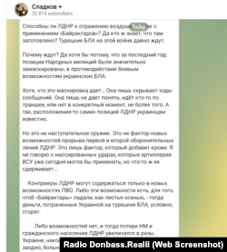 А російський журналіст Олександр Сладков розмірковує про те, чи здатні підконтрольні Росії збройні угруповання збивати українськи БПЛА.