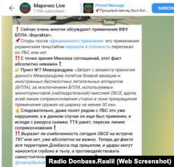 Канал Марочко Live пише про те, що використання Україною БПЛА нібито спрямоване на вихід з мінських домовленостей і констатує, що «де-факто вся територія Донбасу під прицілом, і удари можуть завдаватися глибоко в тилу, а протидіяти самостійно цьому ми не можемо».