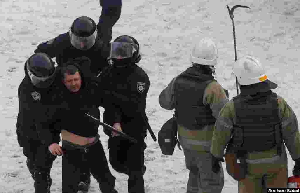 Під час ранкового мітингу під Верховною Радою мітингувальники принесли під стіни будівлі шини і хотіли їх підпалити. Працівники поліції намагалися завадити цьому, внаслідок чого сталася сутичка, під час якої постраждали 14 поліцейських. Затримано 9 мітингувальників. Поліція відкрила кримінальне провадження за статтею «Погроза або насильство щодо працівника правоохоронного органу».