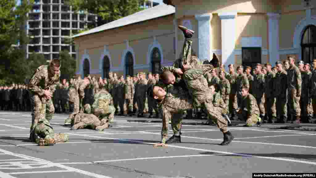 Усі присутні вшанували хвилиною мовчання загиблих на українсько-російській війні. Далі був концерт у виконанні ліцеїстів, показові виступи з військової майстерності. Не забули і про традицію – другий курс передав погони новоприбулим.