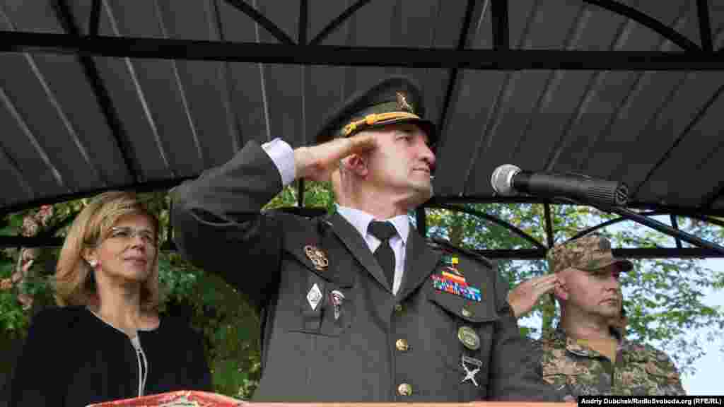Начальник Київського ліцею імені Івана Богуна, генерал-майор Ігор Гордійчук – легендарний боєць із позивним «Сумрак», який отримав важкі поранення на Савур-Могилі – виступив із промовою. «Сьогодні більше ніж 300 наших вихованців пройшло через горнило війни, із них 78 і зараз знаходяться на передньому краї та захищають нашу Батьківщину», – зауважив він.