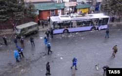Одразу після загибелі людей пролунали звинувачення на адресу України, на місце подій на камеру навіть привезли кількох українських полонених, над якими нібито мали вчинити самосуд місцеві жителі. Спочатку бойовики угруповання «ДНР» заявили, що обстріл вівся з міномета 82 калібру. Коли з’ясувалося, що така відстань завелика для цього калібру, у російських ЗМІ повідомили, що йдеться про українську диверсійну групу на автомобілі з мінометом.