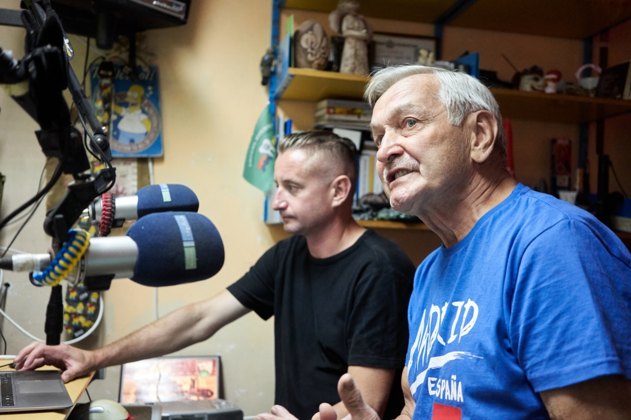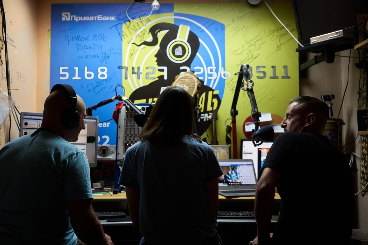 Жінка просто вмикала хоч якесь радіо, пояснює він, щоб були якісь новини, якась музика, якась погода. Але вона запам’ятовує цю інформацію – а української альтернативи немає, обурений волонтер, хіба що бійці в магазині щось будуть розповідати. «Тому на «Тризуб FM» є рубрика із новинами з передової – телефонуємо бійцям, вони розповідають», – говорить Ященко.
