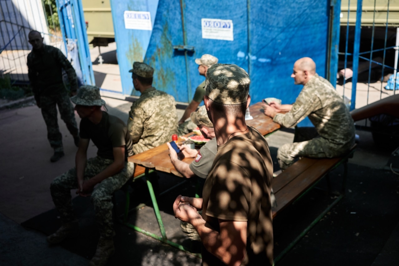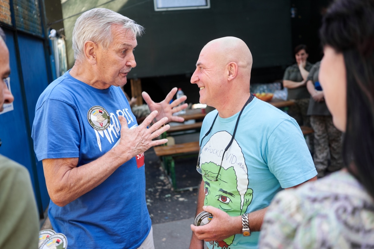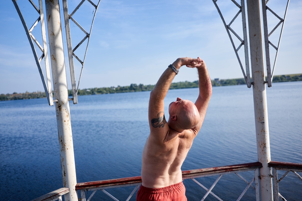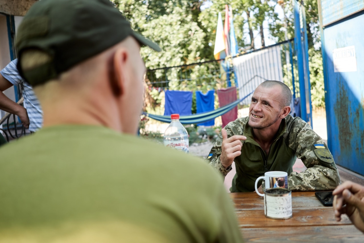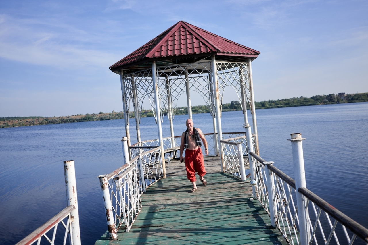 Кожного дня лікарі працюють до 10-11 вечора, і ми вочевидь приїхали рано як для святкового дня. Засновник, координатор і керівник «Тризуб Дентал» Ігор Ященко пішов купатися: неподалік від бази дантистів – Карлівське водосховище. Місця тут дивовижні – з берега ловлять рибу, купається молодь. Про війну нагадує хіба що блокпост Національної гвардії біля дамби.