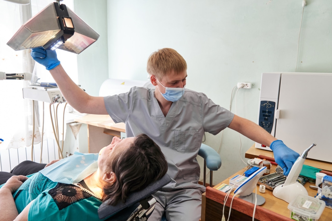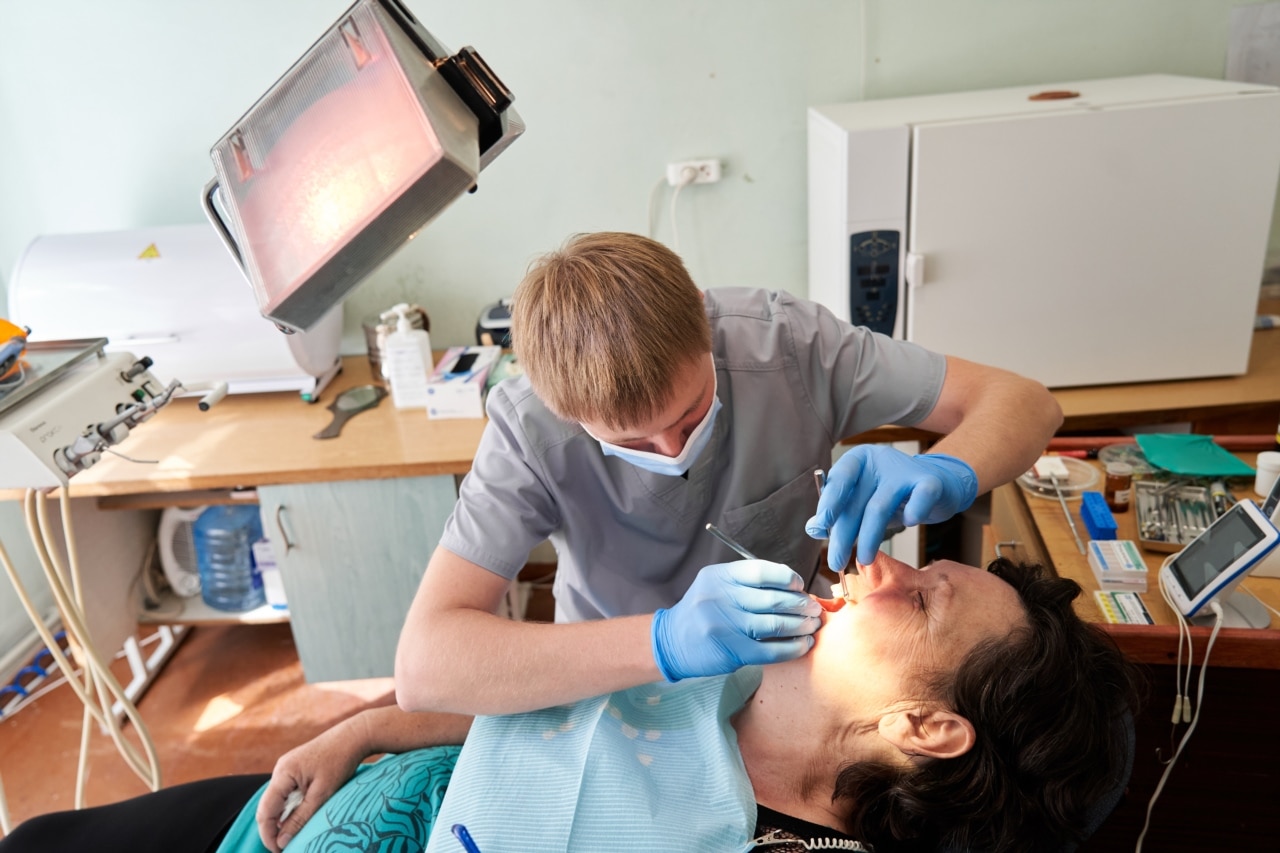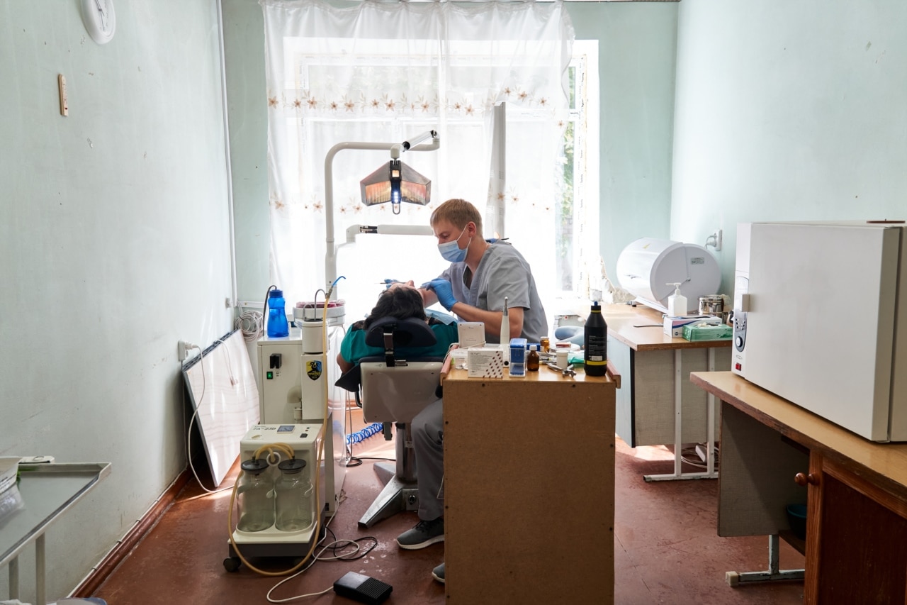 Лікар робить паузу, відходить від пацієнта. У Красногорівці він – єдиний дантист: доводиться і пломби ставити, і зуби видаляти, і протезування робити. До інших лікарів без автівки майже не доїхати.