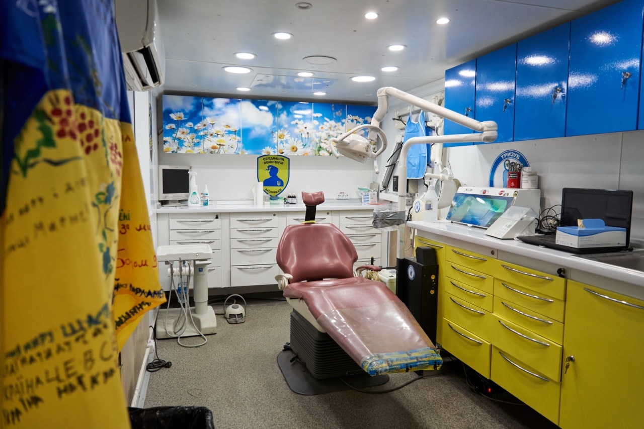 Біля будинку стоять кілька самохідних та мобільних зубних кабінетів – в мікроавтобусах, причепах чи цілих контейнерах. Все це накопичено за п’ять років роботи і не простоює. Хоча, як часто буває, стартував величезний волонтерський проєкт із бажання зробити щось для військових – та віддати, щоб самі використовували, говорить нам Ященко.