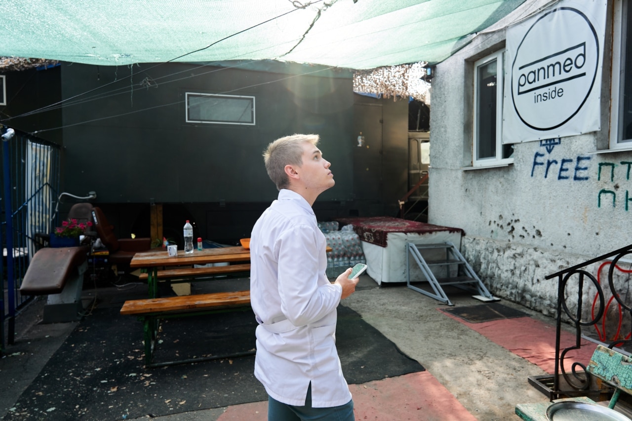 Напевне, це один з наймолодших лікарів тут – він закінчив університет всього три роки тому. Їздити сюди почав ще студентом і каже, що практика була просто чудова. В «Тризуб Дентал» він потрапив завдяки лікарю Олегу Бойку – в Рівному вони познайомились у волонтерському фонді, який зварював антикумулятивні екрани (спеціальний захист бронемашин – ред.), а потім разом поїхали на схід.