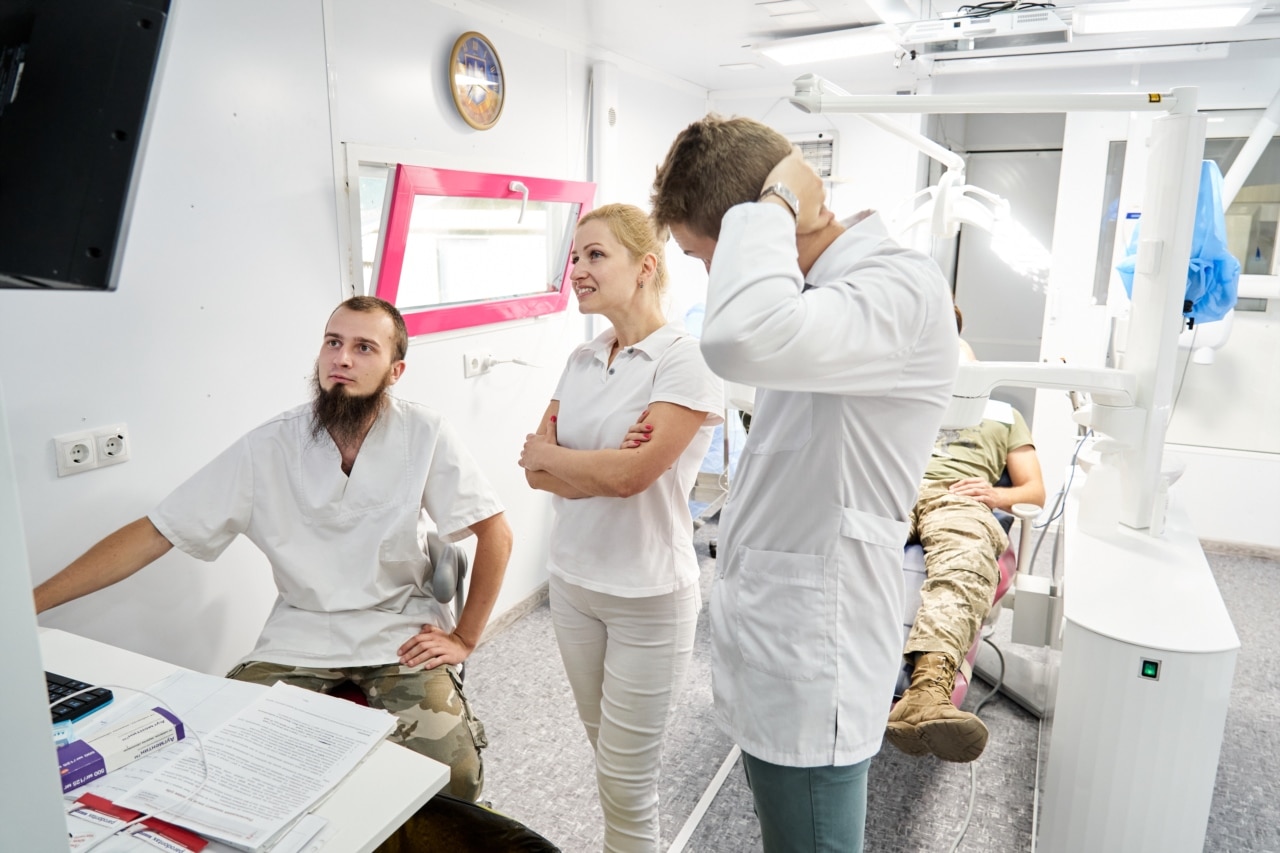 Все розпочалося в 2015 році, говорить Ященко, і головна ідея була – поставити на ноги стоматологічну службу Збройних сил України. Вона була (а в багатьох аспектах досі залишається) радянською, яка розглядала дантистів перш за все як хірургів. Вони вміють вирвати зуб, зібрати щелепу після кулі чи осколків, але їх не вчили ставити пломби, вичищати зубне каміння чи ставити імпланти.