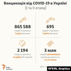 За станом на 10 травня, 865 590 українців отримали щеплення від старту кампанії з вакцинації. З них першу дозу отримали 865 588 осіб, а завершили вакцинацію 695 людей, інформує у фейсбуці міністр охорони здоров’ֹяֹֹ Максим Степанов. За позаминулу добу щеплення проводили 25 мобільних бригад та 55 пунктів щеплення. У лідерах з вакцинації опинилися Львівська та Дніпропетровська області.