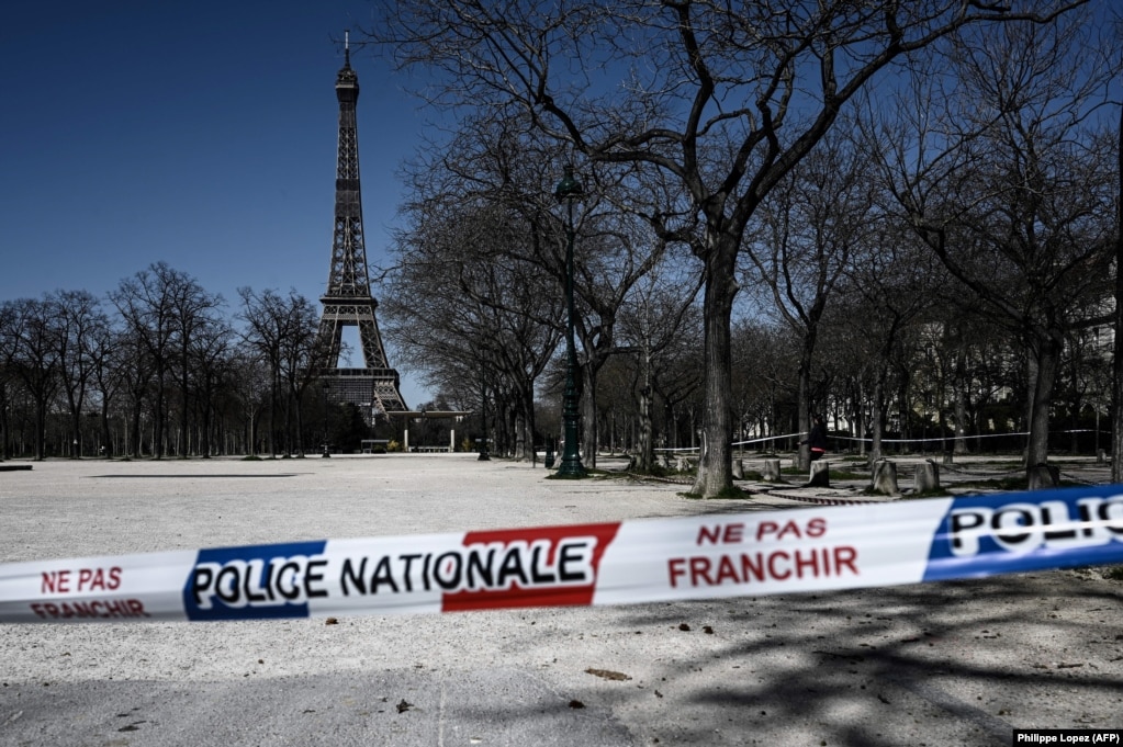 Фото: Закритий парк перед Ейфелевою вежею в Парижі, 23 березня 2020 року