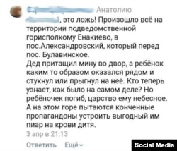 «Произошло все на территории, подведомственной горисполкому Енакиево, в пос. Александровский, который перед пос. Булавинское. Дед притащил мину во двор, а ребенок каким-то образом оказался рядом и стукнул или прыгнул на нее. Кто теперь узнает, как было на самом деле?»