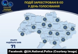 Нацполіція повідомила, що з початку дня отримала 71 заяву, пов'язану з виборами.