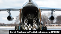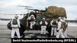 Завантаження військових підрозділів та техніки десантно-штурмових військ Збройних сил України в літаки для передислокації військ по усій лінії українсько-російського кордону
