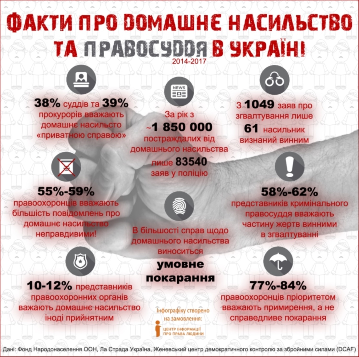 «Якщо раніше за домашнє насильство була виключно адміністративна відповідальність, то тепер вводиться кримінальна відповідальність окремим законом, який теж вже підписав президент. Ця норма набуде чинності лише з січня 2019 року, оскільки потрібен приблизно рік для того, щоб навчити працівників поліції, суддів та прокурорів працювати із цією проблемою», – роз’яснює експерт.