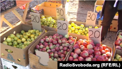 А популярний сорт яблук «Симеренко» – близько 22 гривень за кіло. «Ось ці ось яблука – з Білорусі, ці – з Краснодару», – показує продавець.