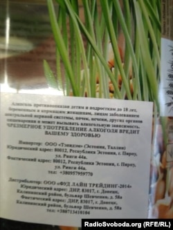Сразу в глаза бросается водка украинского бренда «Хлібний дар». Однако на обратной стороне бутылки наклеена этикетка, где указано, что импортером является... Эстония.