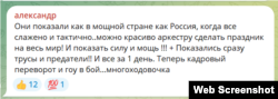 У соцмережах окупованих територій – просто бум конспірологічних теорій від «аналітиків з народу»: від «це була спецоперація ФСБ для виявлення зрадників. І тепер почнуться чистки тих, хто підтримав «бунтівного кухаря». До – «це були розбірки між Пригожиним і Шойгу й, по суті, Пригожин переміг, показавши, на що здатен». Не обійшлося без «руки англосаксів» та тривожного – «невже це громадянська війна у Росії?!»