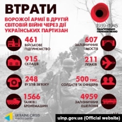• Під час гітлерівської окупації із нацистами у тилу боролися українські партизани і вояки УПА