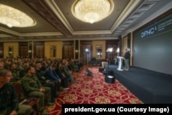 Під час виступу президента України Володимира Зеленського на Міжнародному форумі оборонних індустрій. Київ, 29 вересня 2023 року