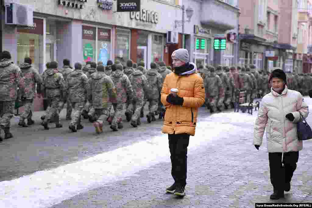 Військові урочистим маршем пройшли через центральні вулиці Ужгорода, де їх зустрічали рідні, волонтери, жителі міста