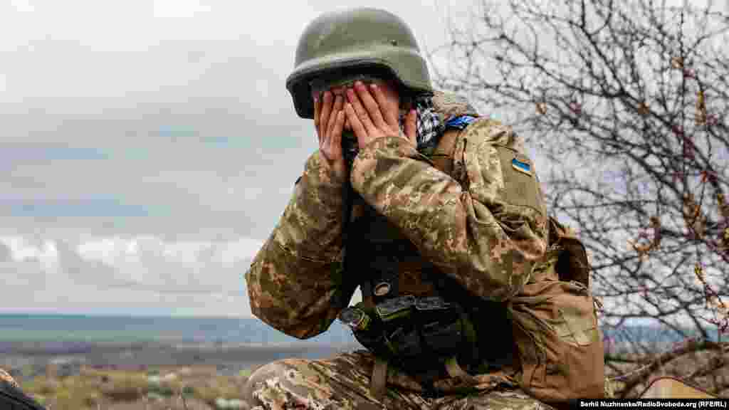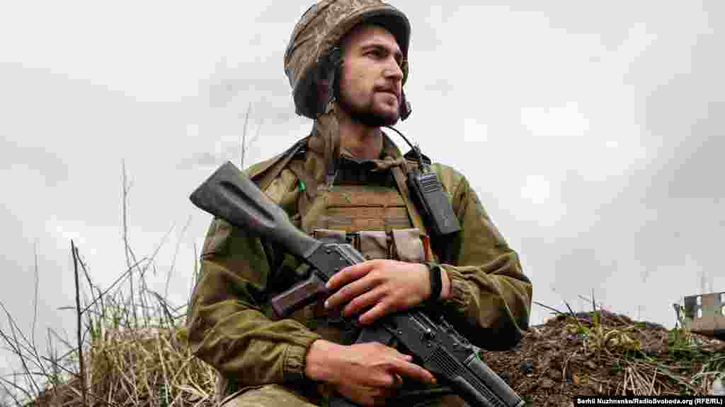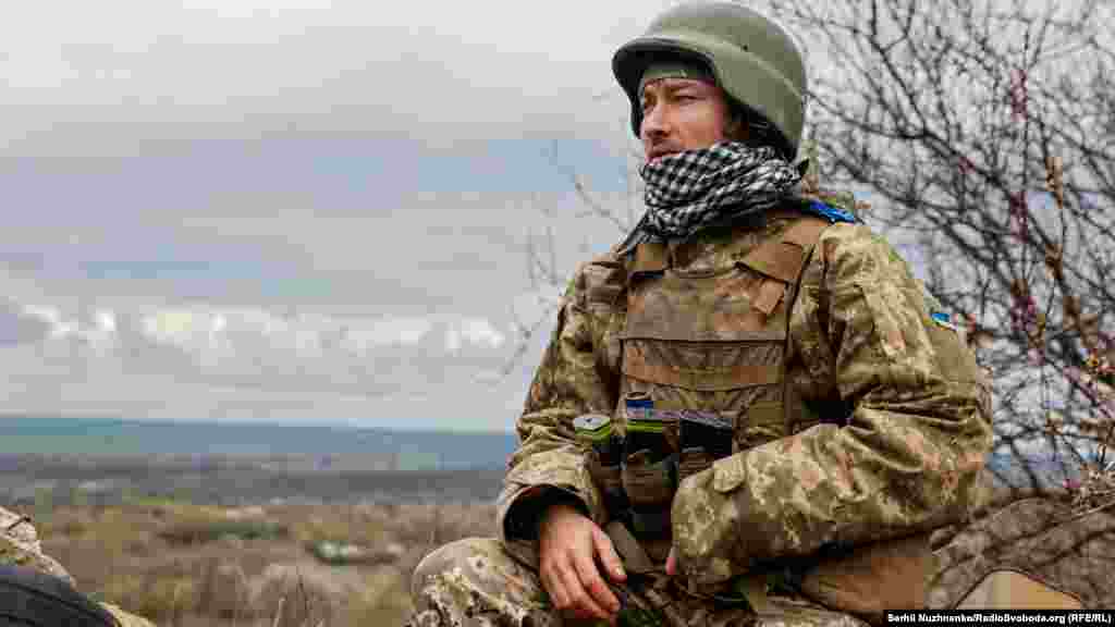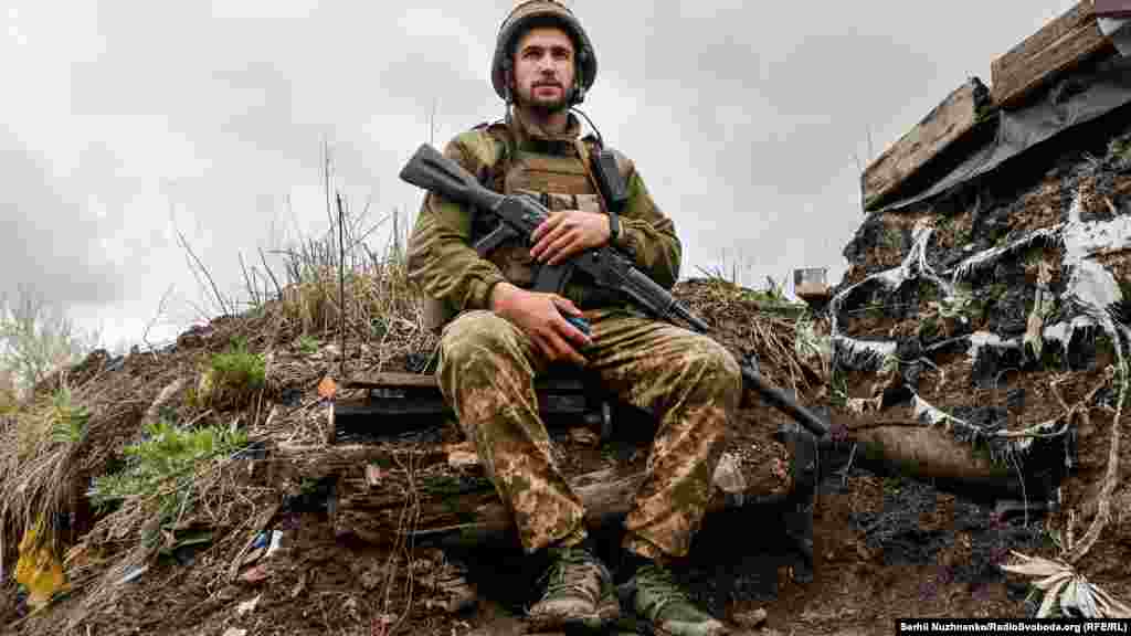Боєць ЗСУ на позиціях поблизу лінії фрону, 22 квітня 2022 року