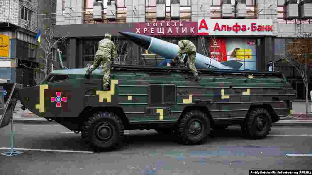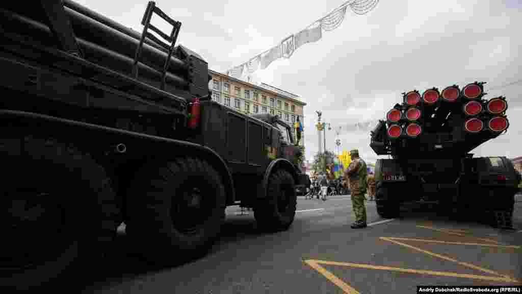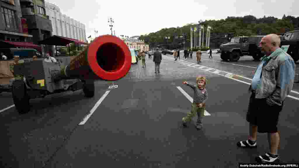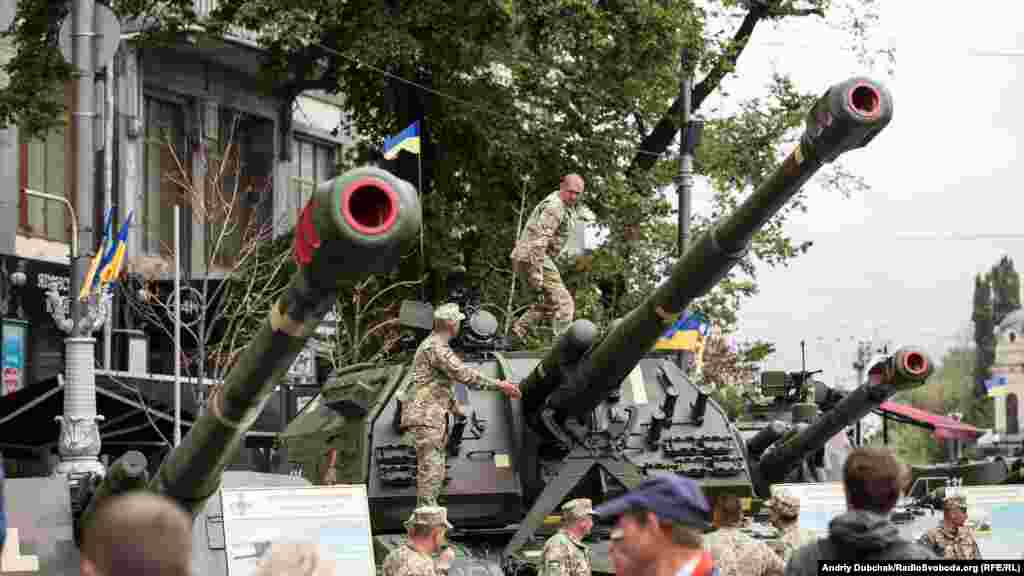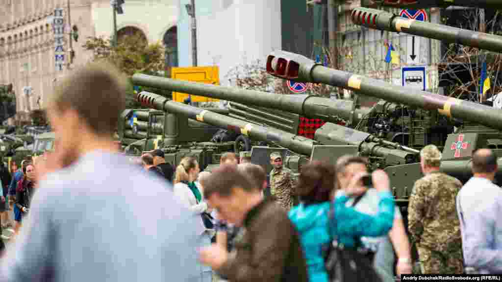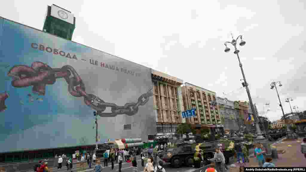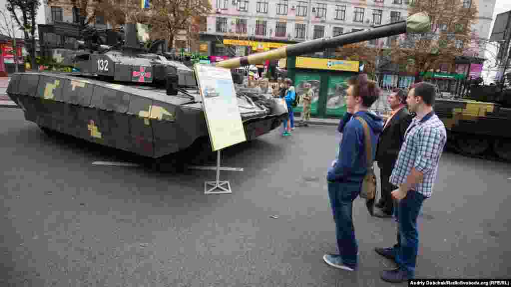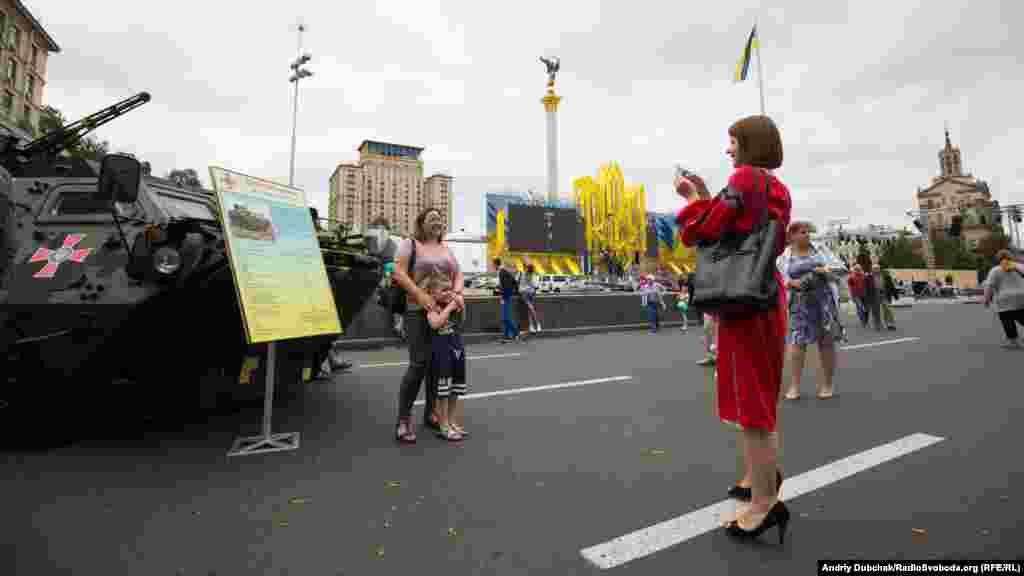 До Дня Незалежності України, який святкують 24 серпня, із 22 серпня на Хрещатику, між майданом Незалежності та Європейською площею, розміщена виставка сучасного українського озброєння та військової техніки під назвою «Міць нескорених». В її експозиції – близько 70 одиниць бойової техніки та озброєнь, серед яких – самохідно-артилерійські установки, танки, бойові машини піхоти, бронетранспортери, вантажні та санітарні автомобілі. Після закінчення свят техніку передадуть українським військовим у зону АТО.