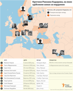 Критики Рамзана Кадирова, на яких здійснили замах за кордоном – інфографіка