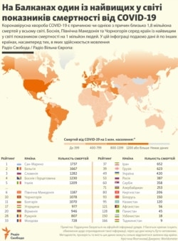 На Балканах один із найвищих у світі показників смертності від COVID-19