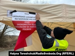 Один із плакатів –«1943 Український геноцид польського народу. 2023 Економічна різанина польського народу українцями» – польські протестувальники причепили на намет.