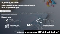 У поліції пояснюють, що адміністративна відповідальність встановлена за самовільне залишення місця обсервації (карантину) особою, яка може бути хворою на COVID-19.
