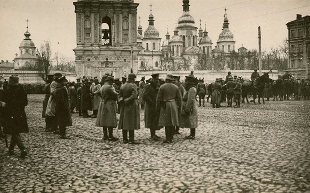 Німецькі військові перед Софійським собором, весна 1918 року.