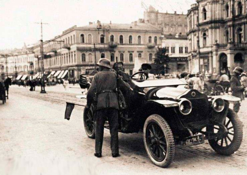 Німецький патруль на Думській площі (тепер майдан незалежності) літо 1918 року.