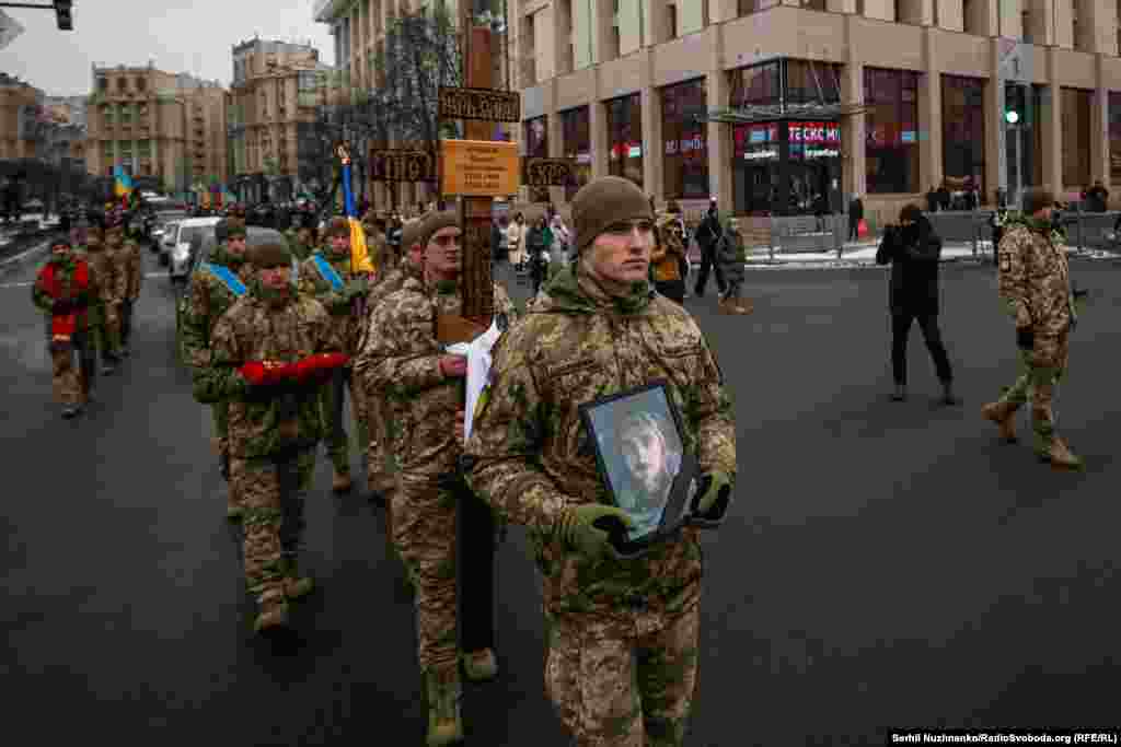 Вдень воїна відспівали у Михайлівському Золотоверхому соборі. Опісля похоронна процесія вирушила на майдан Незалежності.