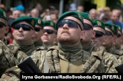 Марш украинских сил продолжился парадом военной техники с участием подразделений Национальной гвардии, пограничников, морской охраны, бойцов полка «Азов», ДСНС, полиции и, конечно же, обычных горожан, которые пришли поддержать защитников.