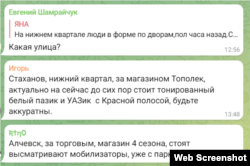 – Стаханов, центр міста, біля «Ясеня»​ грибники, біла маршрутка (грибниками в ОРДЛО називають представників комендатури, які ловлять призовників – ред.)
