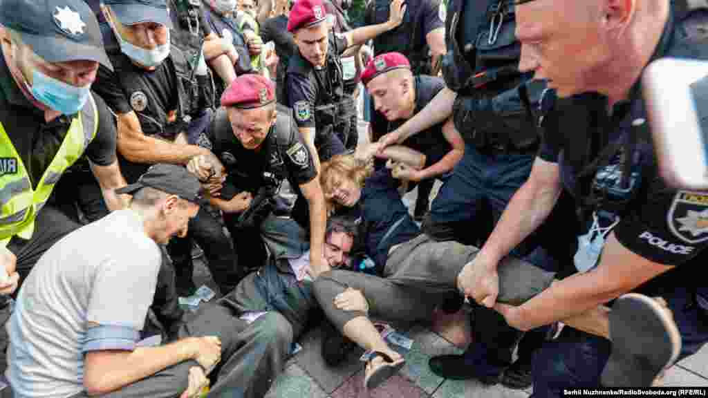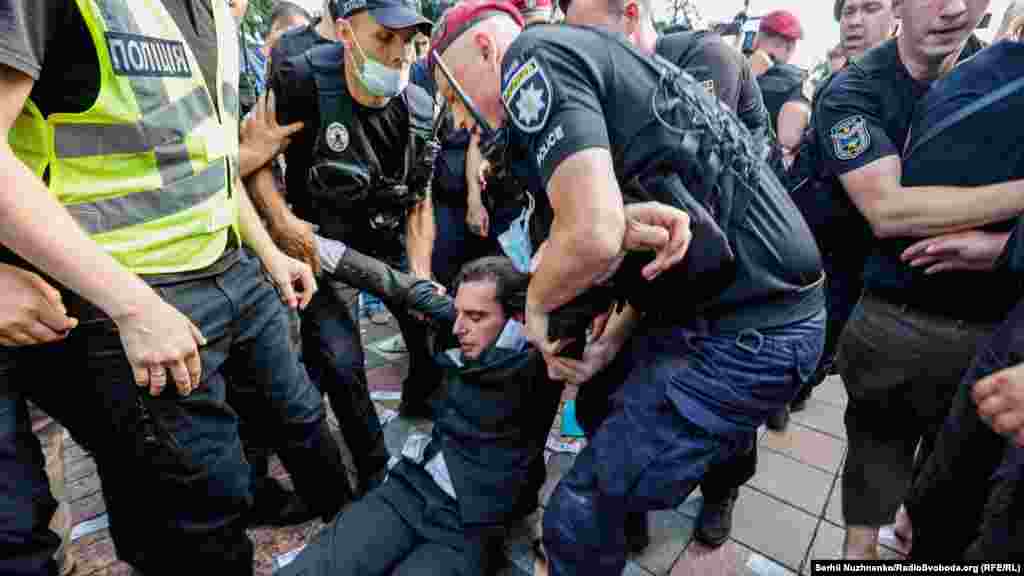 Його скрутили і відтягли за паркан. У затриманні активіста приймав участь, зокрема, полк поліції особливого призначення (ПОП), який є правонаступником спецпідрозділу «Беркут». Загалом були силовики з кількох силових структур, серед них особи в цивільному, які безпосередньо брали участь у затриманні активіста