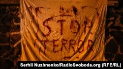Біля посольства Ірану у Києві 17 жовтня відбулася акція протесту Stop terror, під час якої люди вимагали припинити продаж Росії дронів-камікадзе «Shahed-136» іранського виробництва, повідомив кореспондент Радіо Свобода.