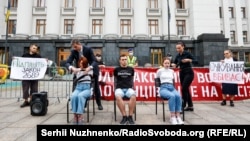 Під Офісом президента України у Києві в четвер відбулася акція на підтримку законопроєкту про воєнних злочинців (№2689). Активісти із «Центру громадянських свобод», які провели перфоманс «Очікування вбиває», кажуть, що законопроєкт перебуває у «підвішеному» стані вже 90 днів.