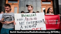 У середу ввечері під будівлею Офісу президента України відбулася акція протесту за звільнення і проти перепризначення на нову посаду нинішнього міністра внутрішніх справ Арсена Авакова.